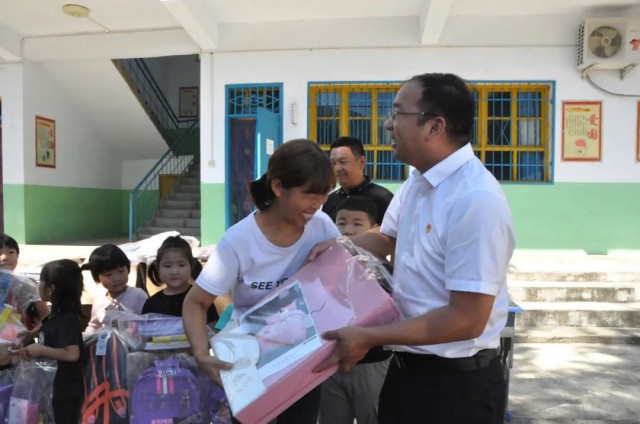 本網(wǎng)訊 9月3日,在新學(xué)期來臨之際,炎黃科技園聯(lián)合黨支部書 記、執(zhí)行總經(jīng)理楊哲帶領(lǐng)聯(lián)合黨支部的黨員代表到洛陽市嵩縣大章鎮(zhèn)趙樓村小學(xué)走訪慰問,為老師和孩子們送去開學(xué)“禮包”。
